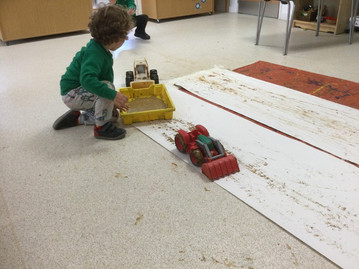 We enjoy finding different ways to make our mark in Nursery! This week, we used paintbrushes and our hands to create some wonderful collaborative art to music which will take pride of place on display in our corridor. We have also had lots of fun making paint tracks with our diggers.