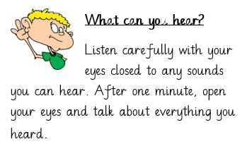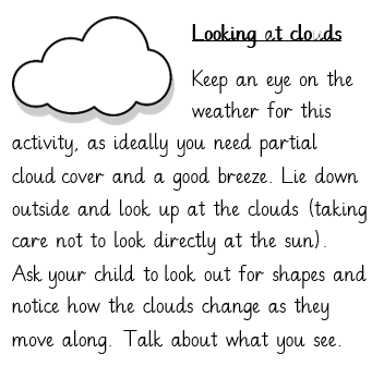 · Spotting colours and shapes around you. What shape is that clock? What colour is that flower? I can see something green, what could it be?