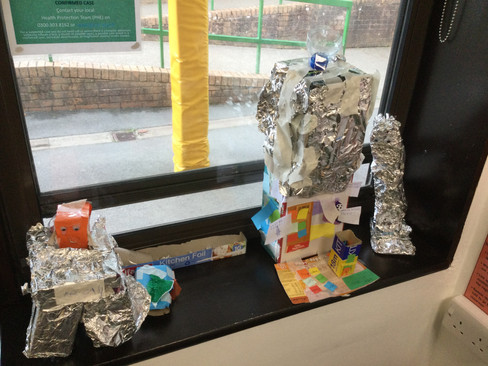 Year 3 are very pleased with the final outcomes of their robot sculptures inspired by Clayton Bailey. The children thought carefully about the 3d shapes they could use to create these and how these could be successfully joined together. The children then thought carefully about how these could be decorated to look robotic.