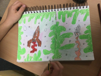 Year 4 have continued to look at the artwork of Peter Thorpe and have used their learning in art to create their designs for their final pieces. They have used a mix of pencil and pastel to create their designs.